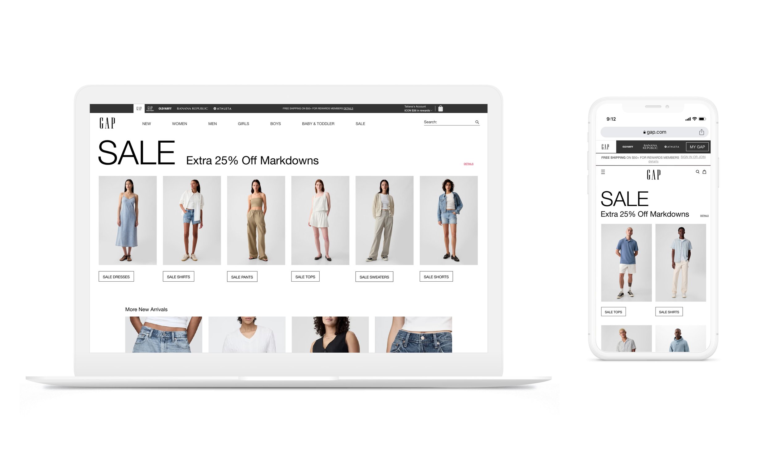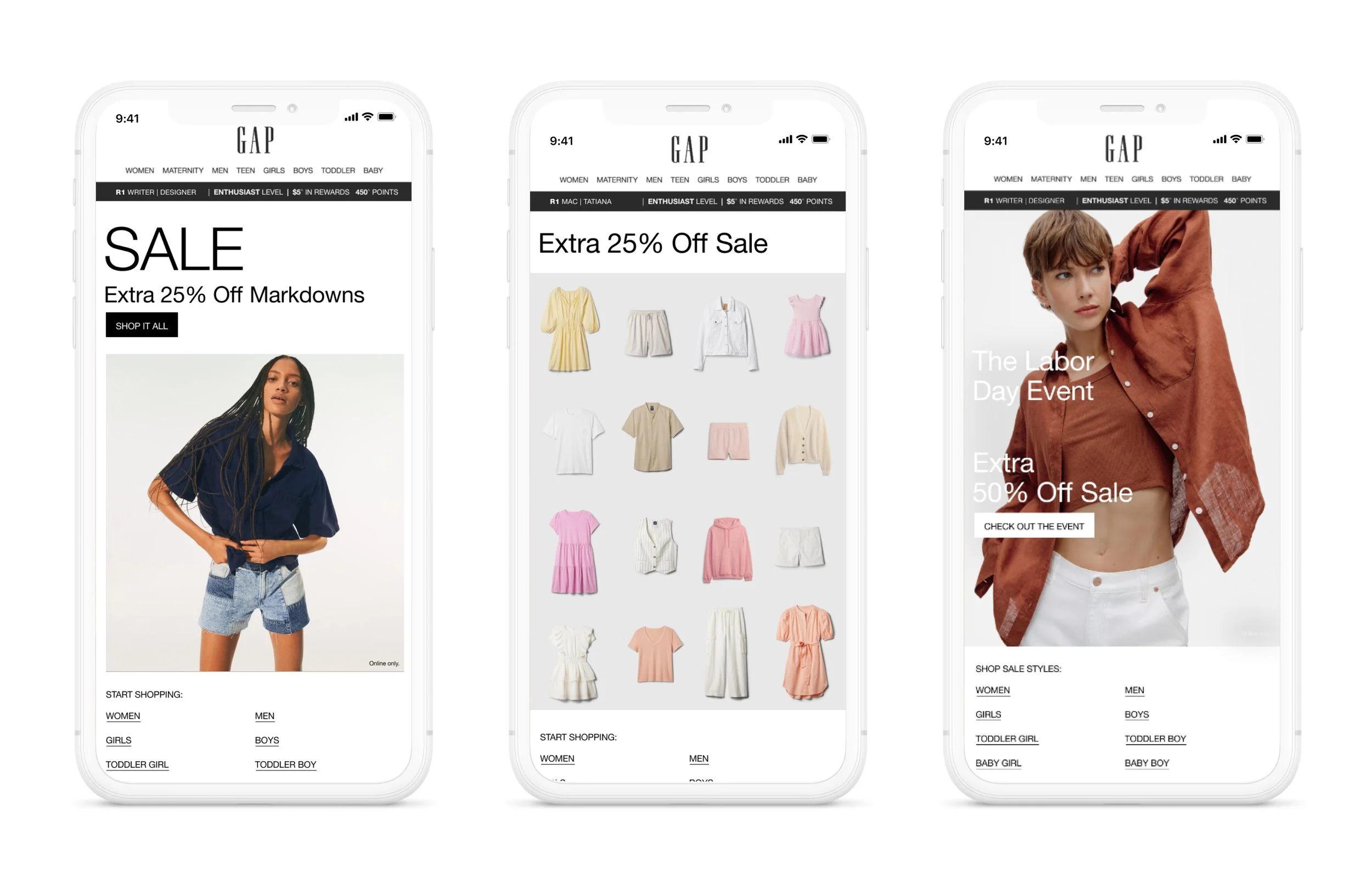 By refining the design system, simplifying layouts, conducting multiple A/B testings, and rethinking CTA placement in close partnership with marketing, updated promo design system helped drive strong performance across site, email, and app — homepage engagement grew 150%+ YOY during GapCash and over 300% during Seasonal Sale, while email CTR increased despite reduced send volume.