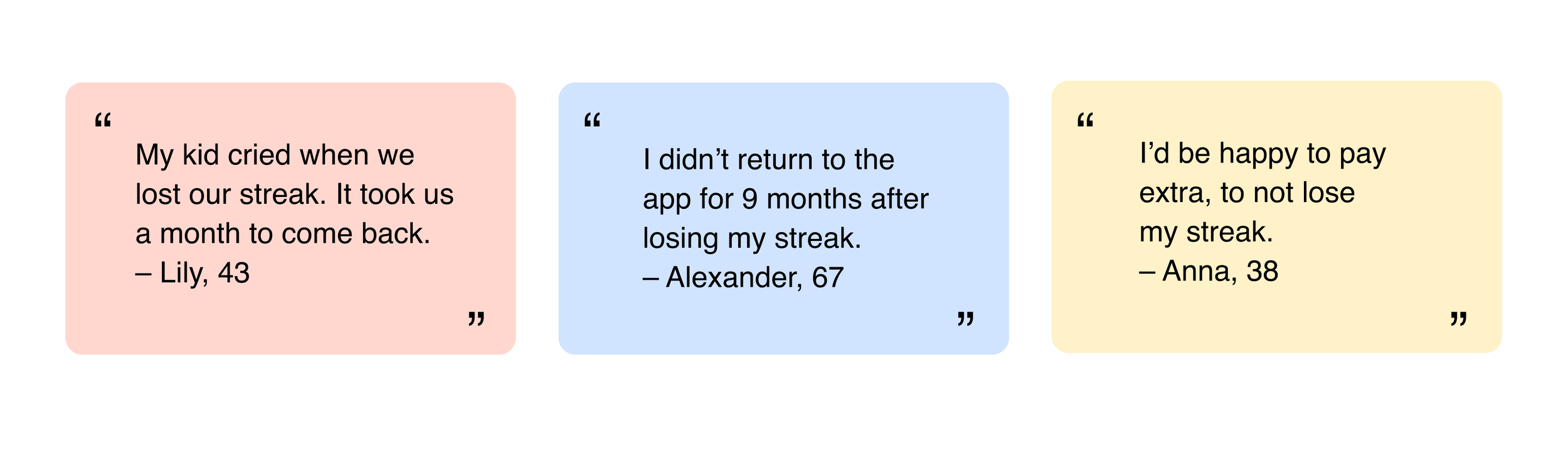 The Emotional Cost of Losing a Streak. All interviewed users reported that losing a streak was extremely upsetting — often more upsetting than they expected. This discouragement sometimes caused them to stop using the app for weeks or even months.